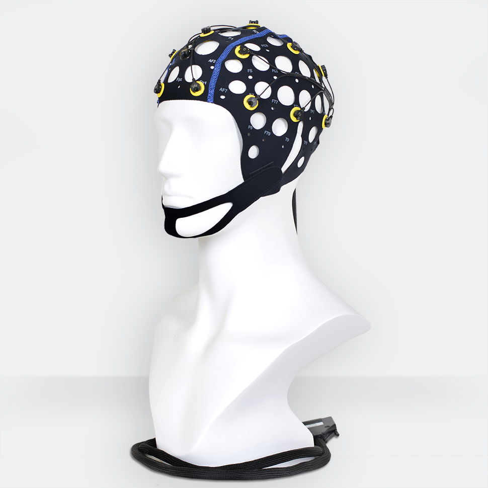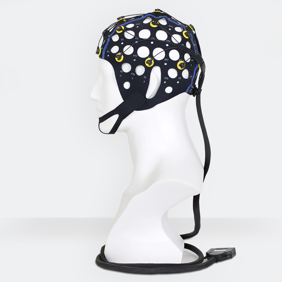 Текстильный шлем изготовлен из эластичного материала, сохраняющего форму и размер. Шлем обеспечивает точное положение электродов на голове без дополнительных измерений и регулировки. Большие отверстия предусмотрены для вентиляции и обеспечения доступа к электродам и коже пациента. Шлем фиксируется на голове с помощью подбородника или нагрудного ремня. Шлемы имеют маркировку согласно системе 10‑10. Идентификация размера шлема осуществляется по цвету шва.