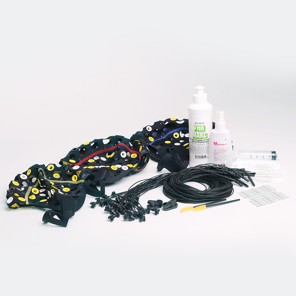 ELECTRODE SET – это комплект из съёмных Ag/AgCl sintered электродов MCScap‑E с разъёмами TouchProof 1,5 мм (DIN 42 802‑ST) и текстильных шлемов MCScap® с кольцами. ELECTRODE SET может применяться для проведения рутинного ЭЭГ обследования, научно-исследовательской ЭЭГ. Электродный шлем предназначен для использования совместно с электроэнцефалографами и усилителями биологических сигналов.