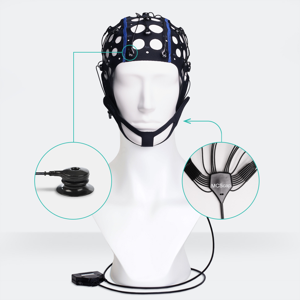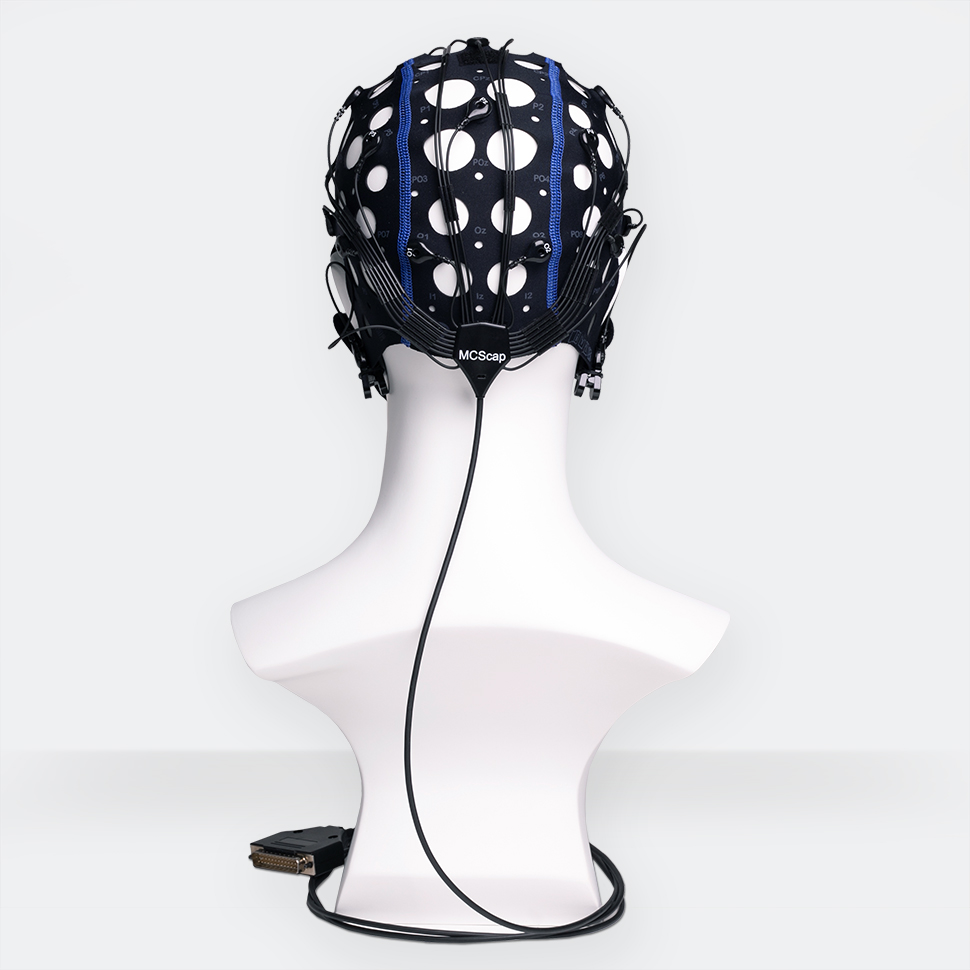 Шлем электродный – это текстильный шлем с предустановленными Ag/AgCl sintered электродами MCScap‑NTC. Провода отведений электродов собраны на шлеме с помощью разветвителя, от которого отходит тонкий кабель пациента с общим разъемом DB‑25M для подключения к ЭЭГ-усилителю. Электродный шлем предназначен для использования совместно с электроэнцефалографами и усилителями биологических сигналов. Шлем электродный рекомендован для рутинной ЭЭГ и для научных исследований.